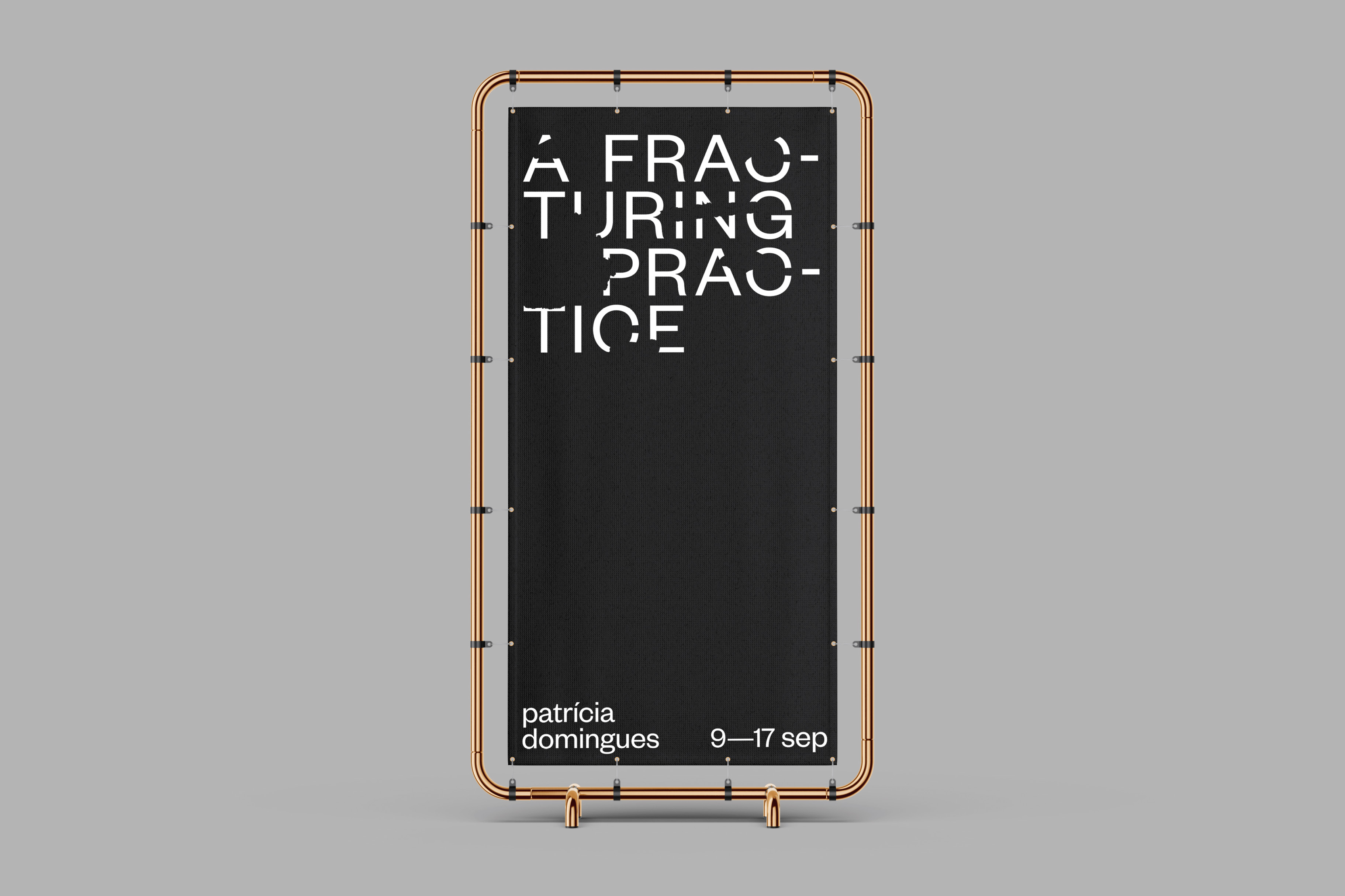 Graphic image for the exhibition “A Fracturing Practice” by artist Patrícia Domingues taking place at PXL MAD, School of Arts in Hasselt, Belgium. Patrícia Domingues works with jewellery and her research explores “the landscape as strong spatial connection with man and the vivid perception of it and its representations is always a self-reconstructed image and a vehicle to translate different perceptions of immensity. In this way, the panoramic picture of the landscape, can by contrast reveal the inside of the mountain, and a single fragment of it can also represent the whole. Within this context one of the main research problems arise and deal with scale and size. They look at the different dimensions between the mountain and the stone we can hold in our hand, between the immense and the detail.”