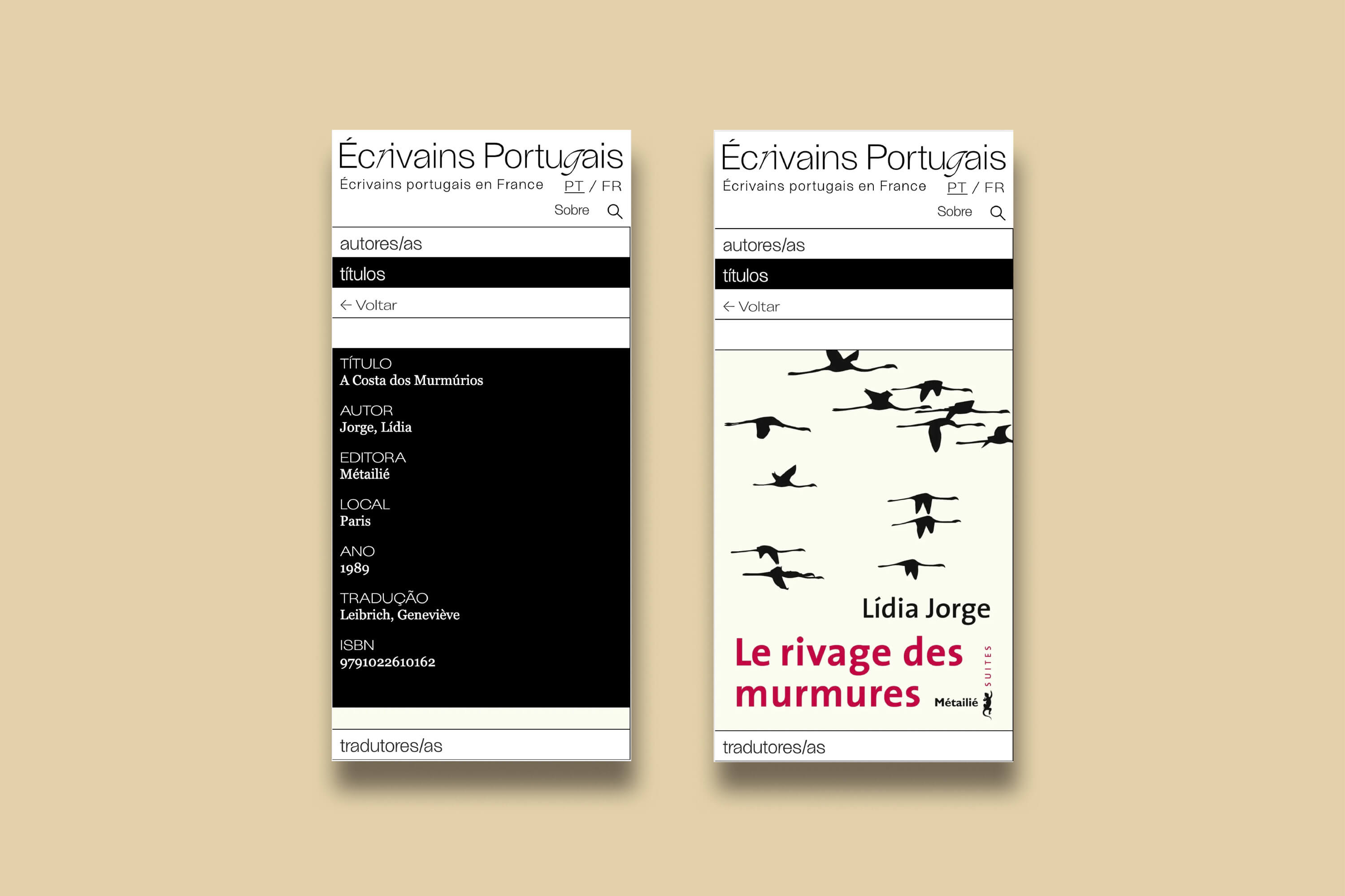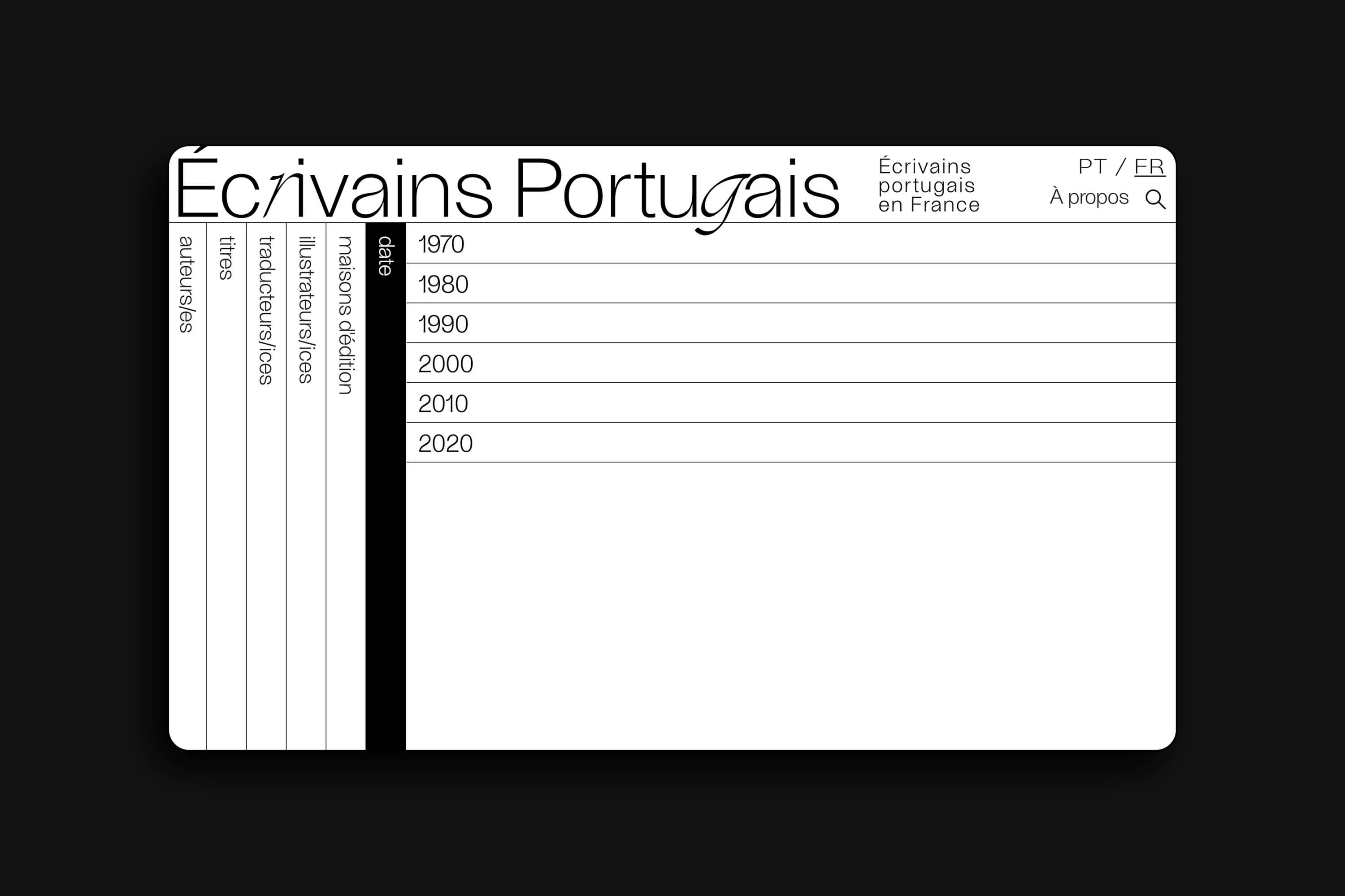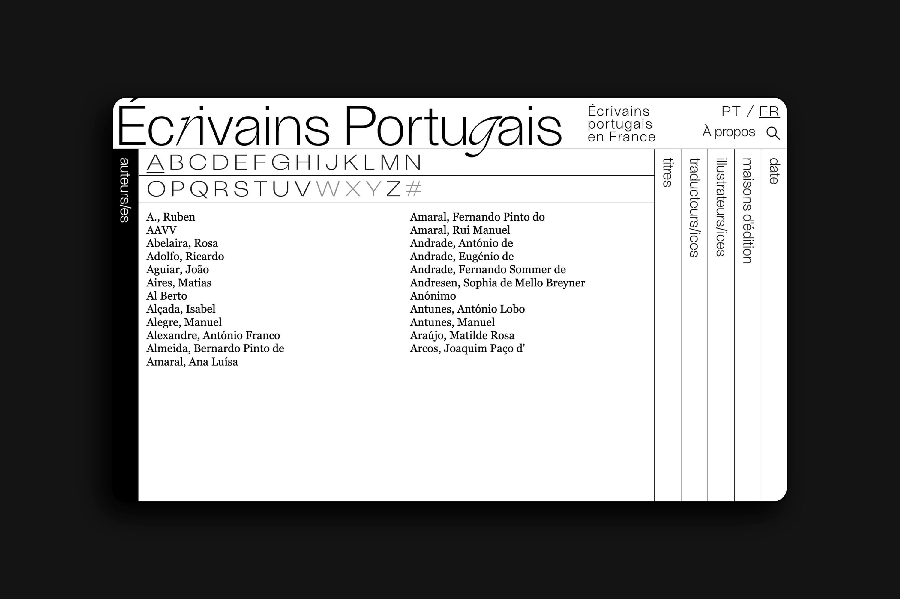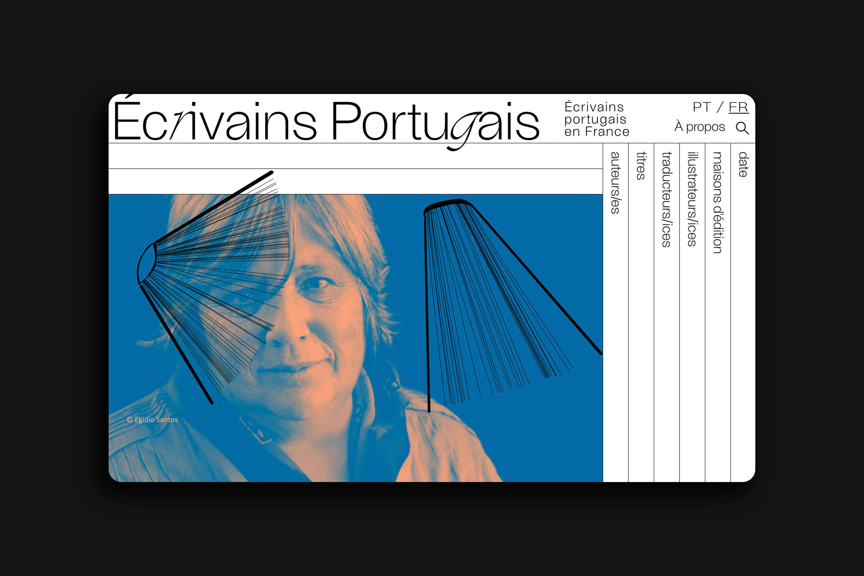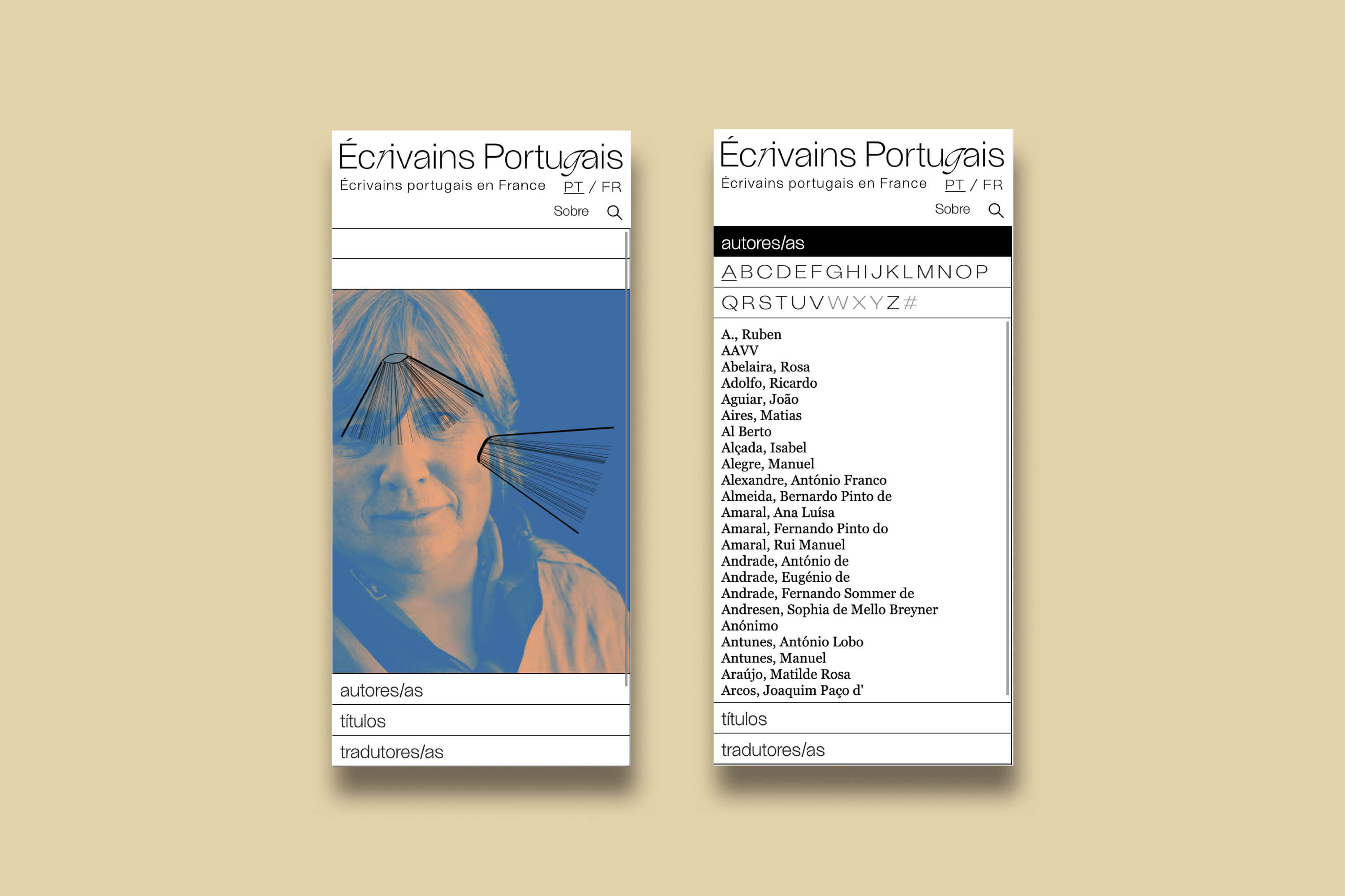 Graphic identity and online platform for the project Écrivains portugais en France (Portuguese Writers in France), an initiative by the Portuguese embassy in France.