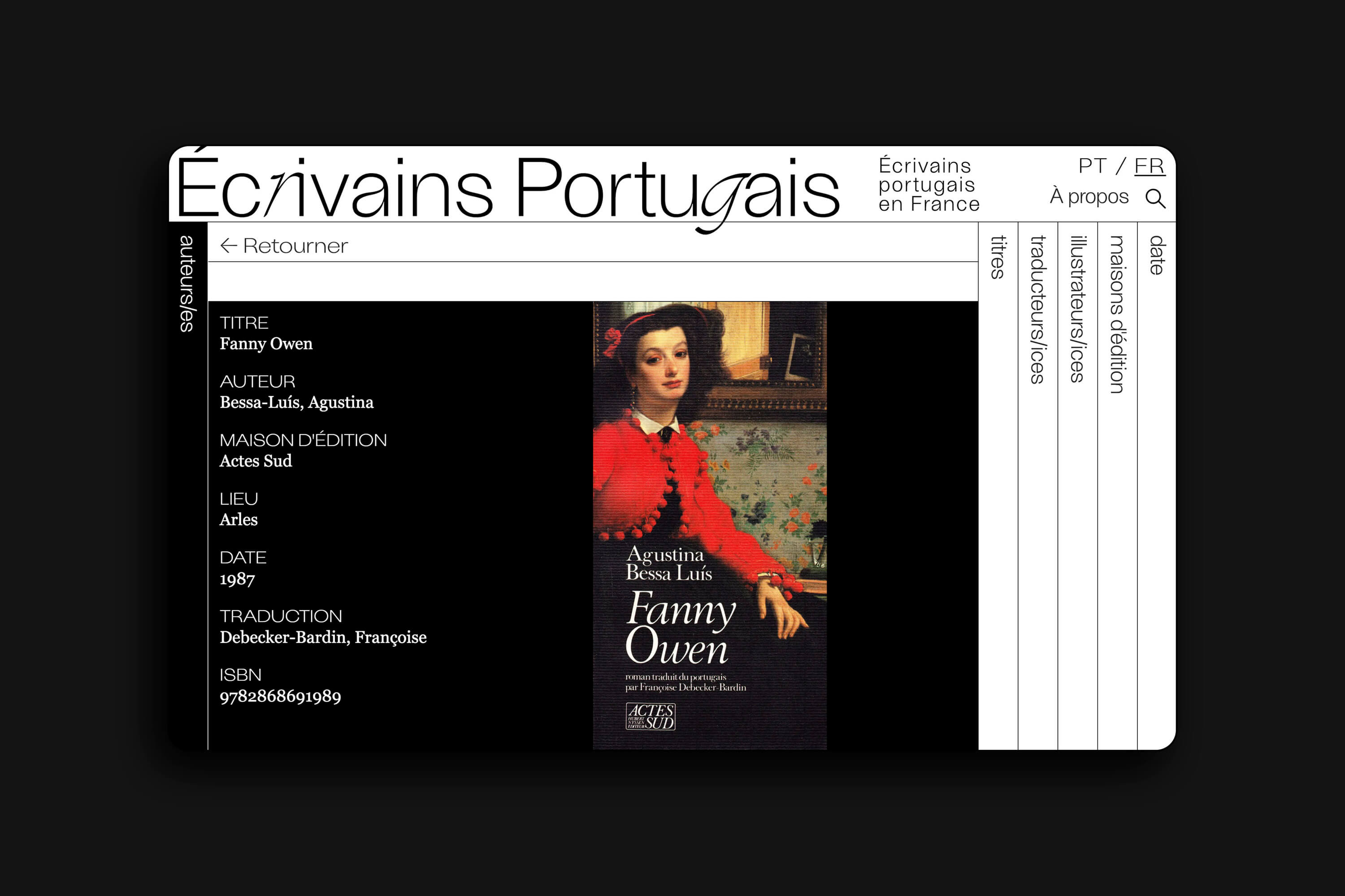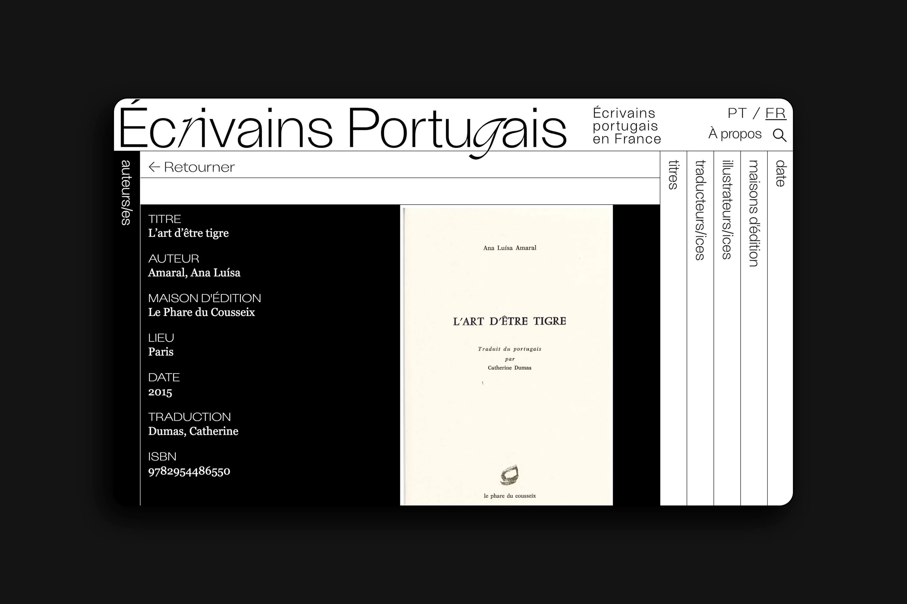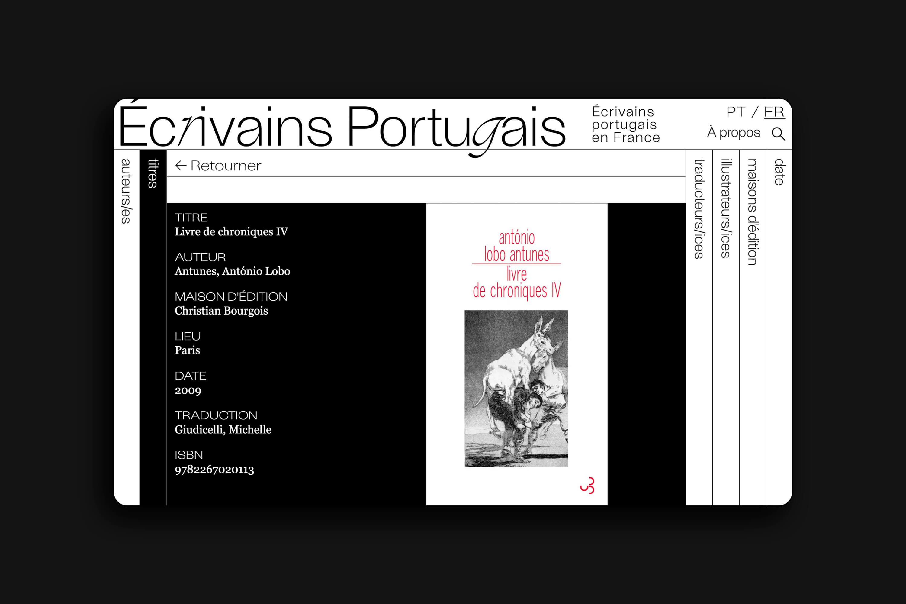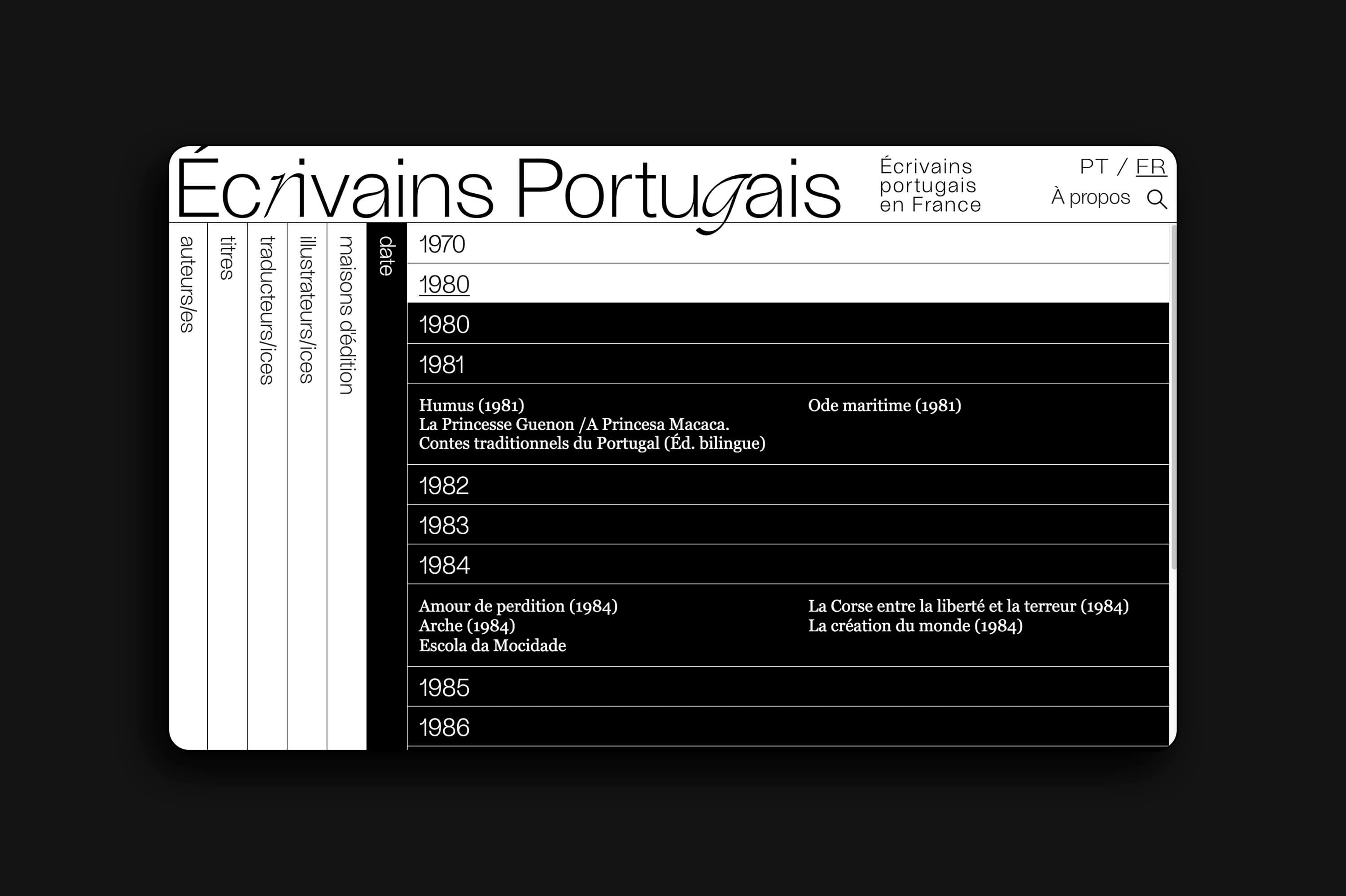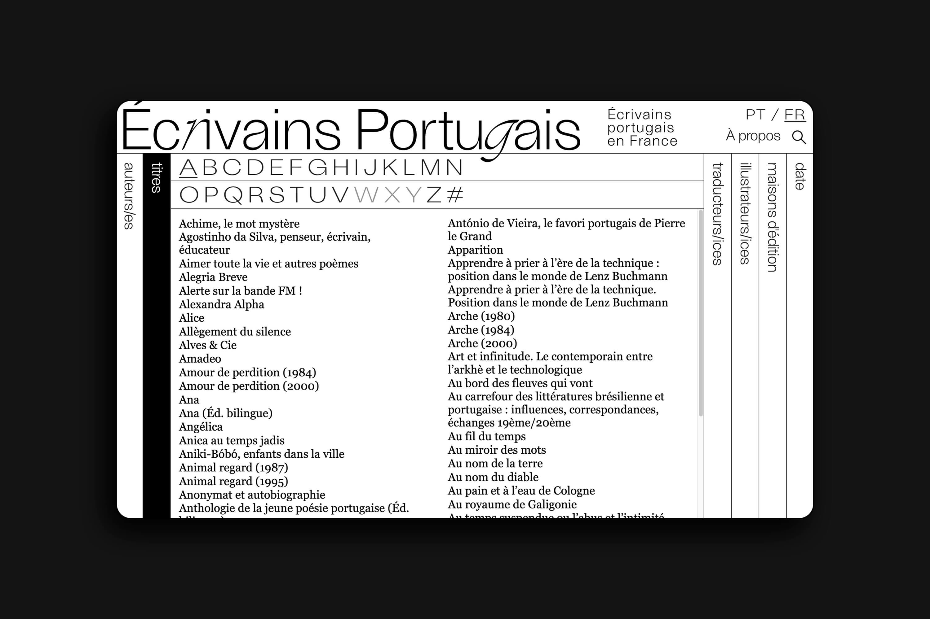 Graphic identity and online platform for the project Écrivains portugais en France (Portuguese Writers in France), an initiative by the Portuguese embassy in France.