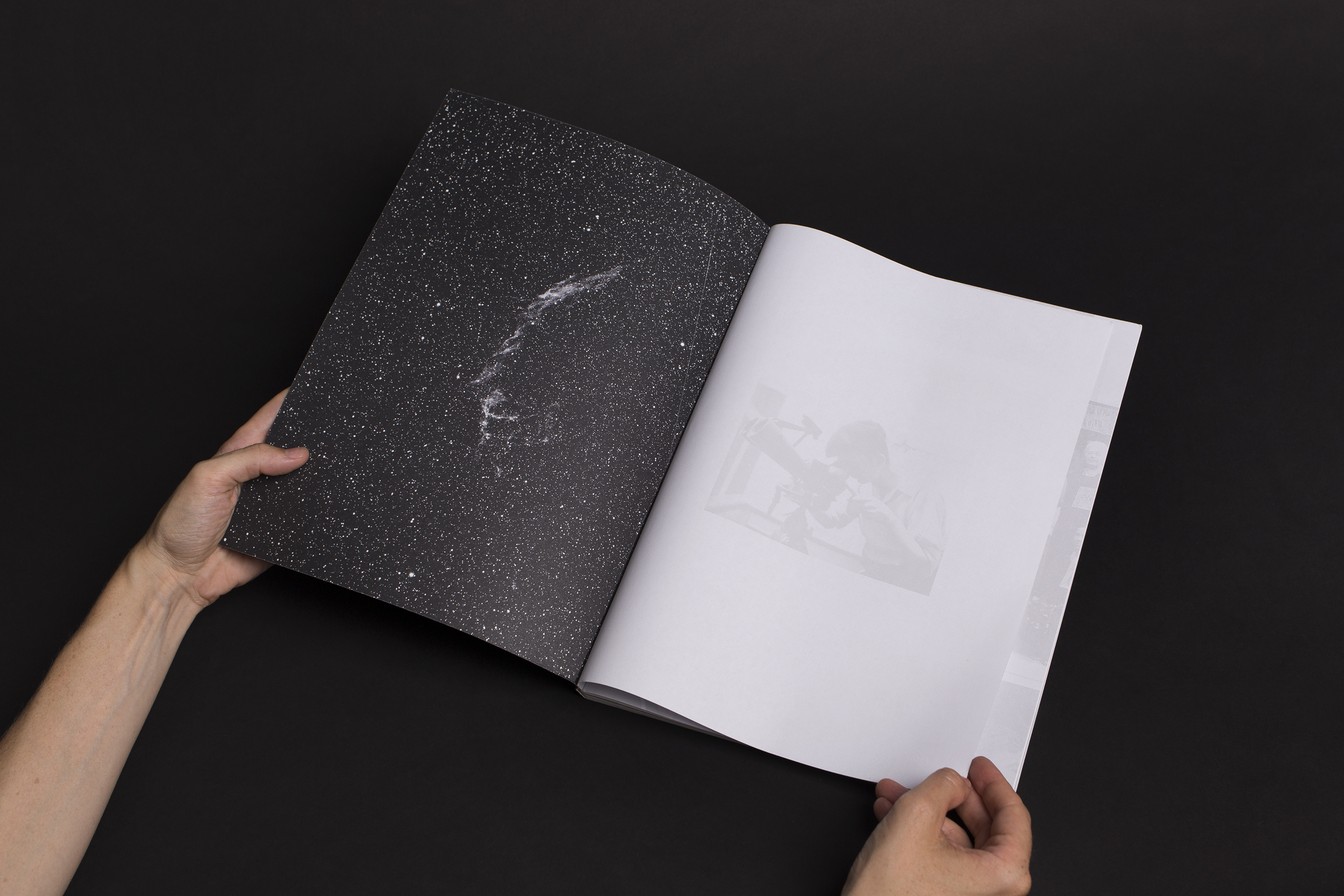 Staring Into the Night‘Staring Into the Night’ is a book that brings together Amélie Bouvier's research and artistic work inspired by astronomical stories and the history of observing the sky, from the late 19th century to the present day. Amélie has taken a particular interest in the collection of astronomical photographic glass plates from the Harvard College Observatory in the United States: these plates, made mostly by women, have fuelled her imagination over the last five years and form the basis of her most recent projects, which explore the history of observation, our attachment to representation and the scientific imaginary, and the issues that shape our collective memory and heritage. By focussing her research on astronomy and its history, Amélie Bouvier's work aims to highlight our contemporary relationship with the narratives that emerge from scientific technologies and our need to represent them. Through drawing, installation, video and objects, Amélie uses facts and stories to understand the malleability of reality through the fascinating evolution of astronomical aesthetics. In addition to her relationship with the Harvard College of Observatory collection, Amélie also had a family relationship with the subject through her grandfather, who also had a fascination with the skies. In this way, the publication ‘Staring into the night’ crosses Amélie's family narrative with the photographic collection of women astronomers and the work of the artist. Representing this relationship with the star and family memory and the artist's work, the book presents two types of paper: on one we see the transfigured delicacy of the photographic images and on the other we see Bouvier's work, which spans areas such as drawing, installation and video. The book adopts the original measurements of the photographic glass plates and presents a superimposition of elements that are gradually thickened: if the Harvard astronomical archive begins with a 10% grid, by the end it is clearly visible in a 100% grid, a metaphor for the discovery of these photographic plates and the women who made them: because of their gender, these women couldn't work at night. These glass plates were what enabled them to study the sky. This was fundamental to the construction and concept of a book that seeks to see at night during the day.