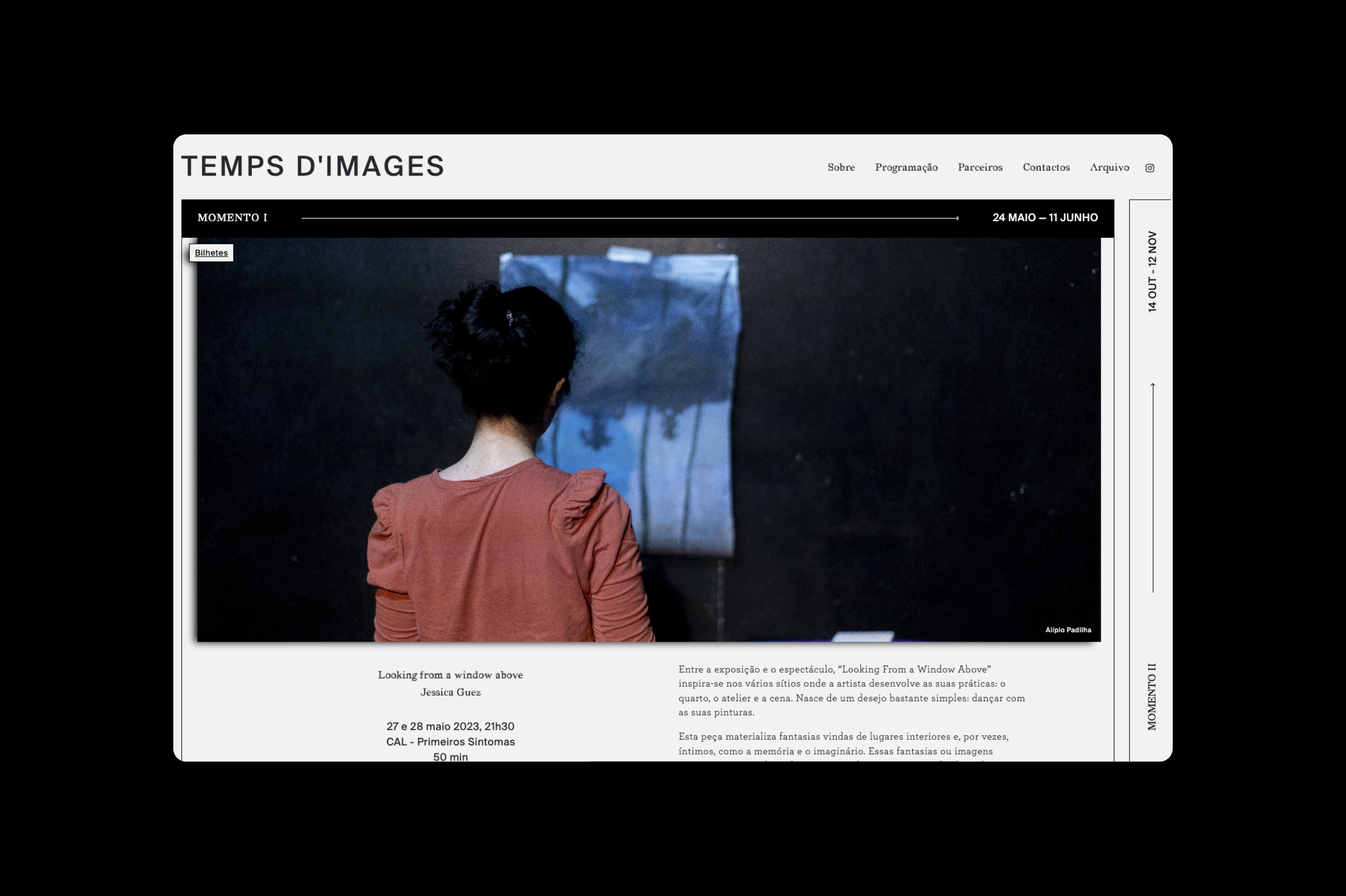 Focusing on the relationship between live art and image, Temps D’Images is a multi-disciplinary festival that presents plays, performances, various shows, installations, exhibitions and films in various venues around Lisbon. Since its first edition, its main goal has been to support contemporary creation and its protagonists, promoting proximity between artists, programmers and audience, and fostering the circulation and presentation of relevant works, both in emblematic venues of the city and in new and unusual spaces. For the 2023 edition, ilhas studio used the metpahor of tempo (Portuguese for time and weather) to play with a foggy ciuratin on top of an enigmatic list of words: they all represent the different phonetic forms that the name Temps D'Images, of French origin, has taken through the public over the 21 years of the festival's existence.
