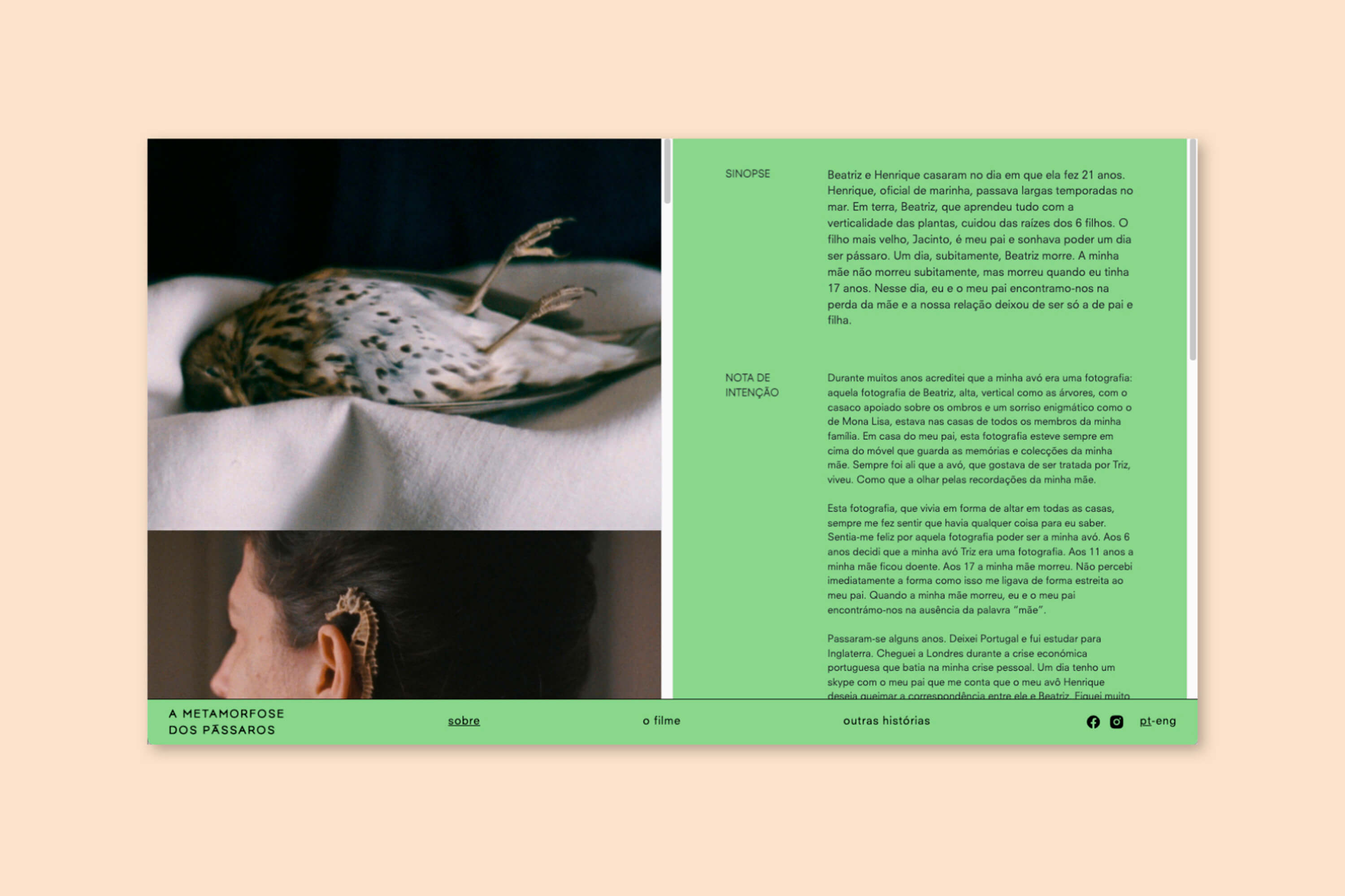 Poster and website for A Metamorfose dos Pássaros (The Metamorphosis of Birds), the first feature film by the portuguese director Catarina Vasconcelos.