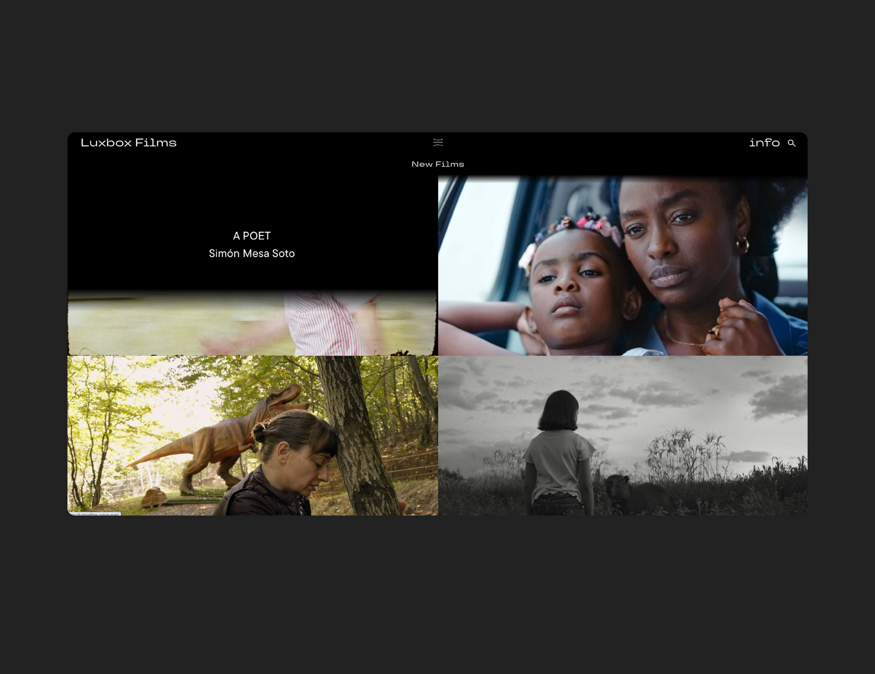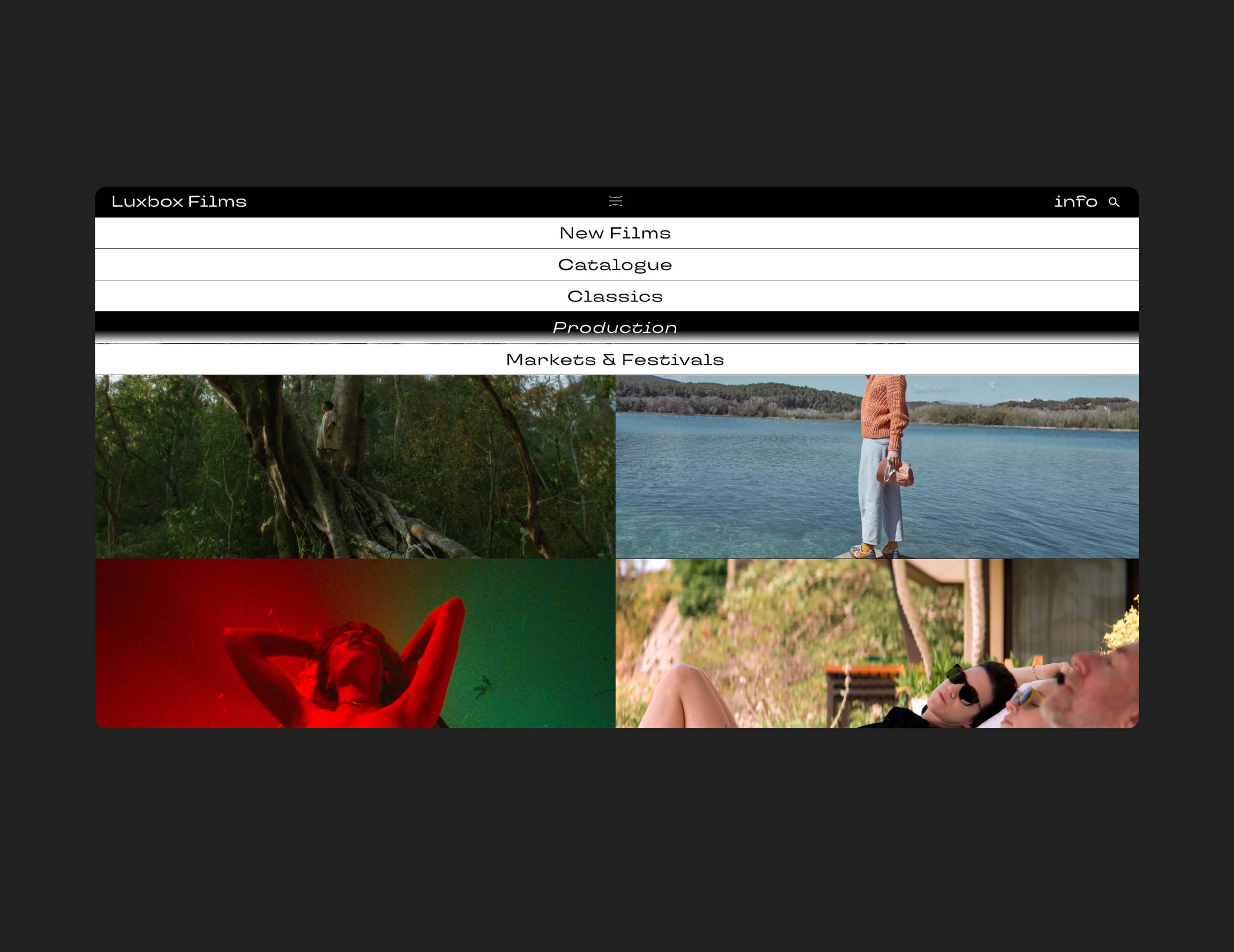 Beginning with a complete redesign of the company’s website, we chose a strong, expressive typeface and maintained a strict black-and-white palette, allowing the films’ imagery to take center stage.