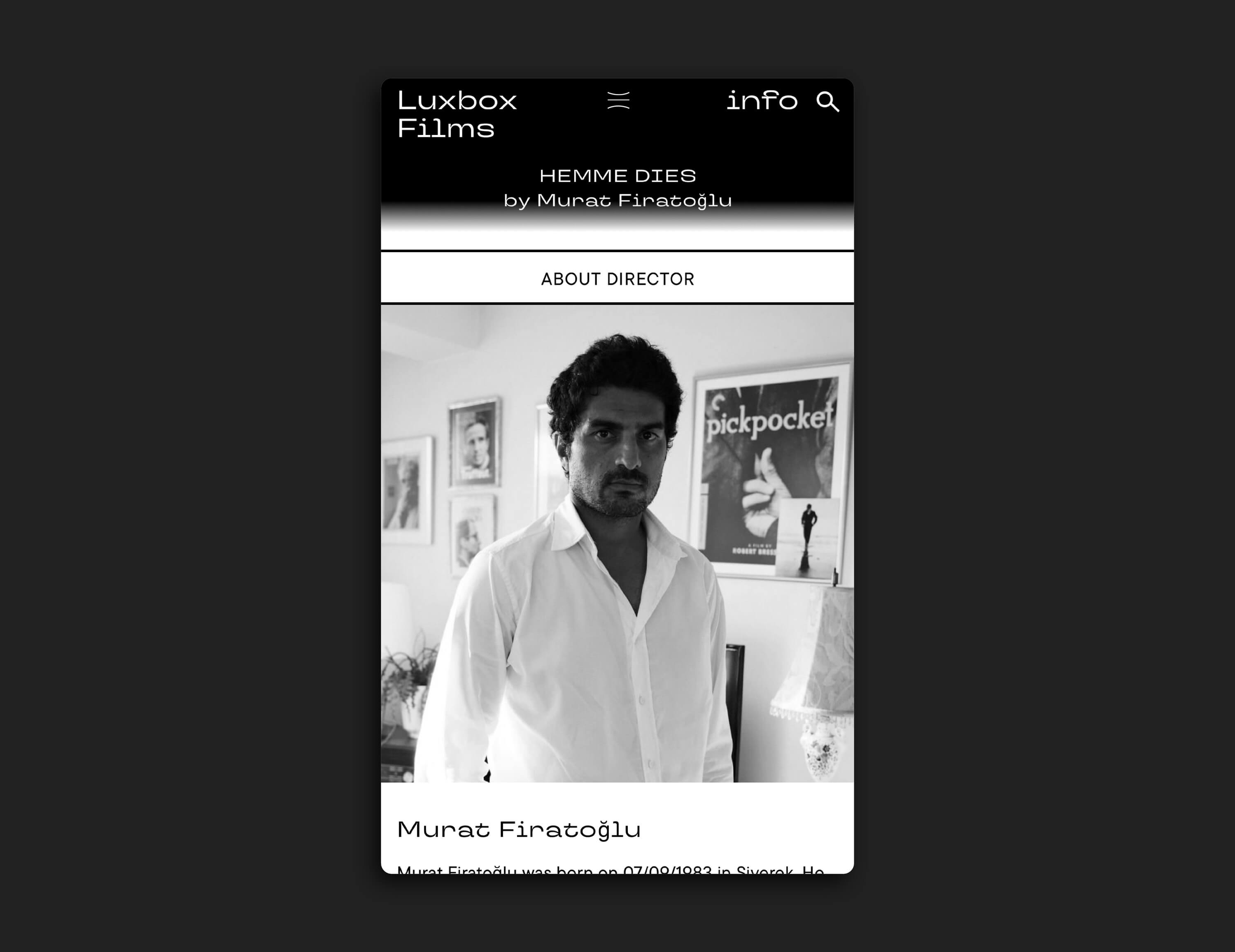 Drawing inspiration from the cinematic experience and historic theaters, where the screen is revealed rather than immediately exposed, the website introduces a black “curtain” motif that partially conceals the movie frames.