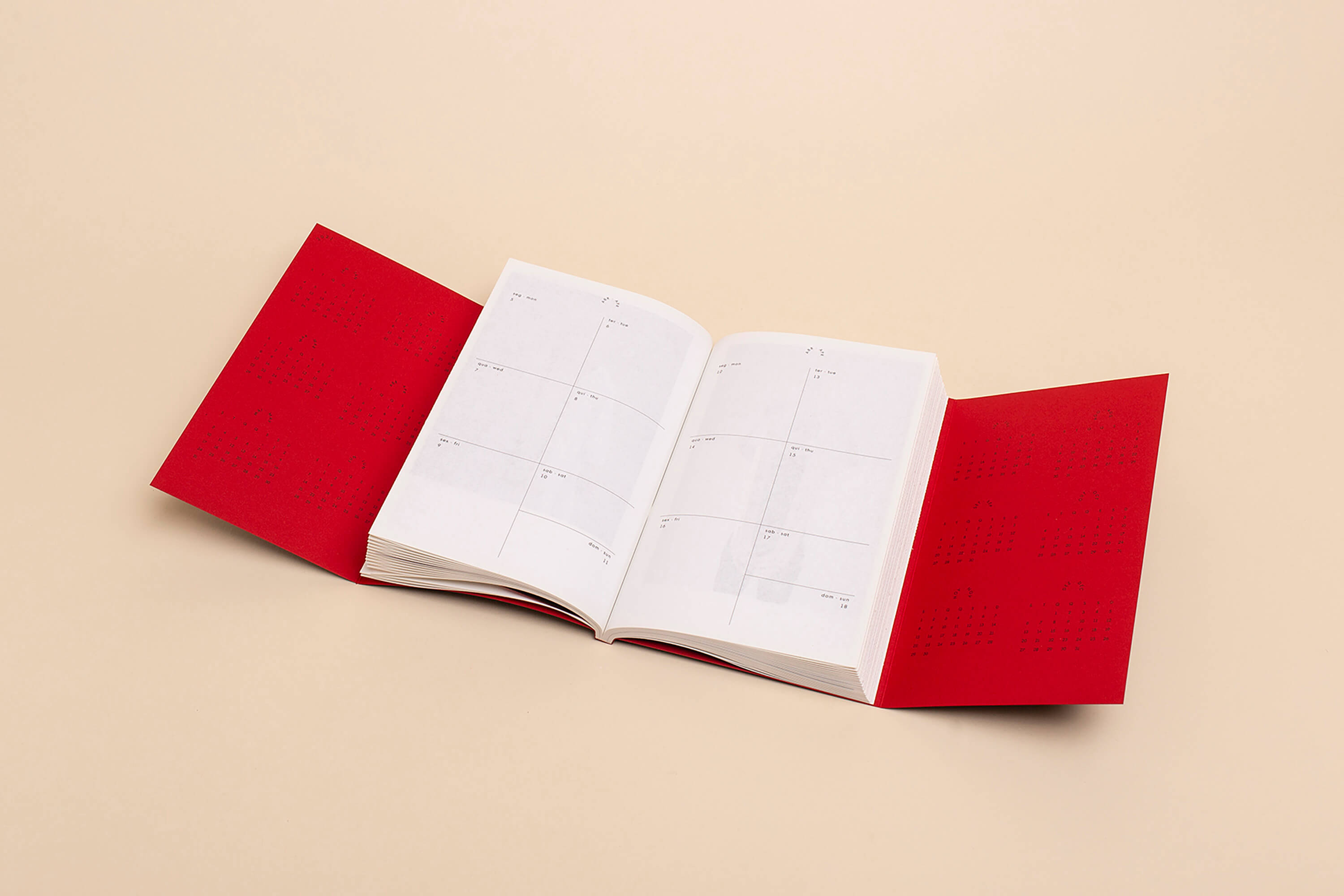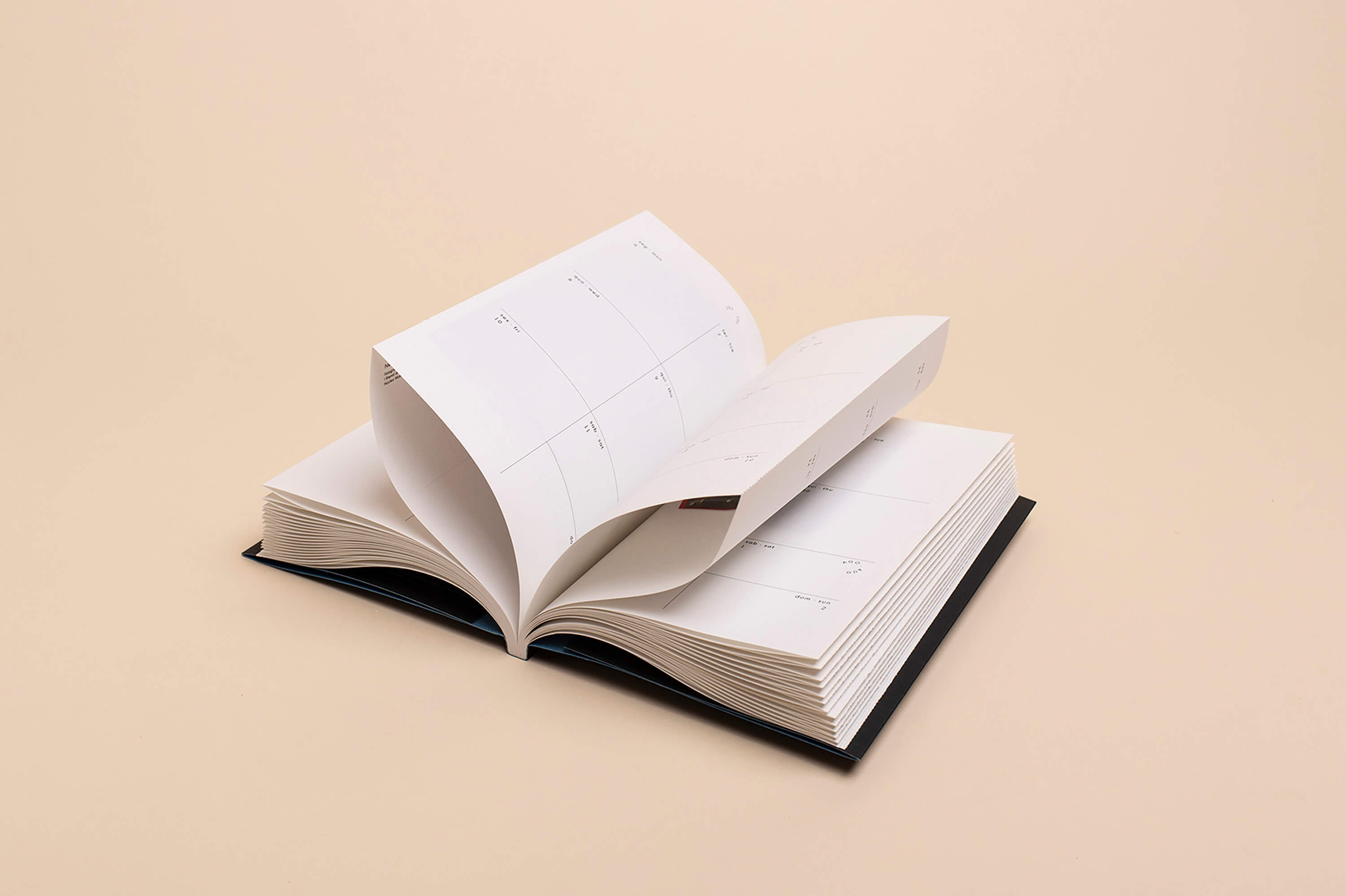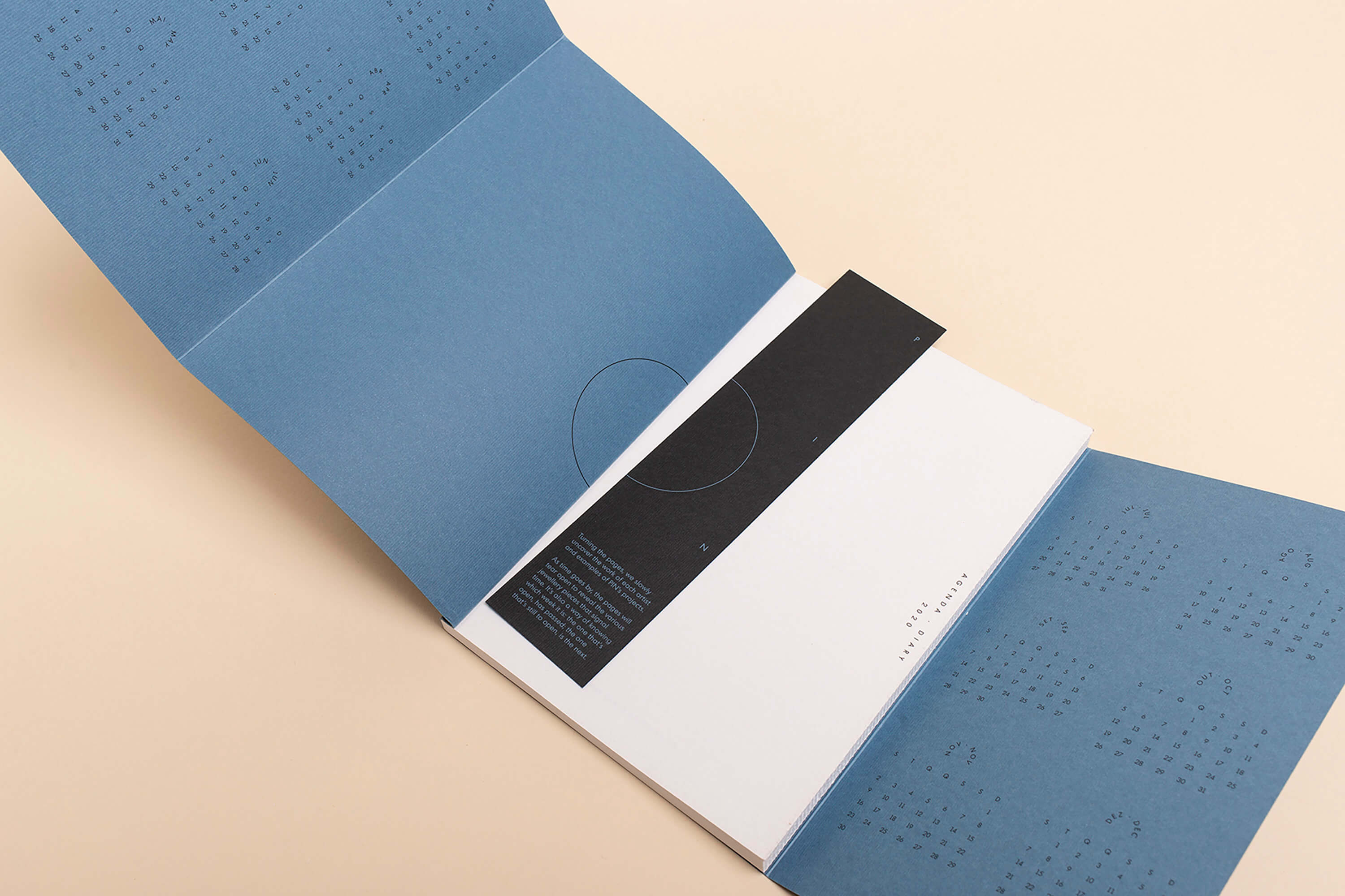 These two planners are meant to be used as a working tool as well as a catalogue of some of the work made by the members of PIN. The pages of the diary hide the images of the jewellery works. As the pages were previously perforated, the bookmarker that is inside, is able to open them allowing us to discover all of works.