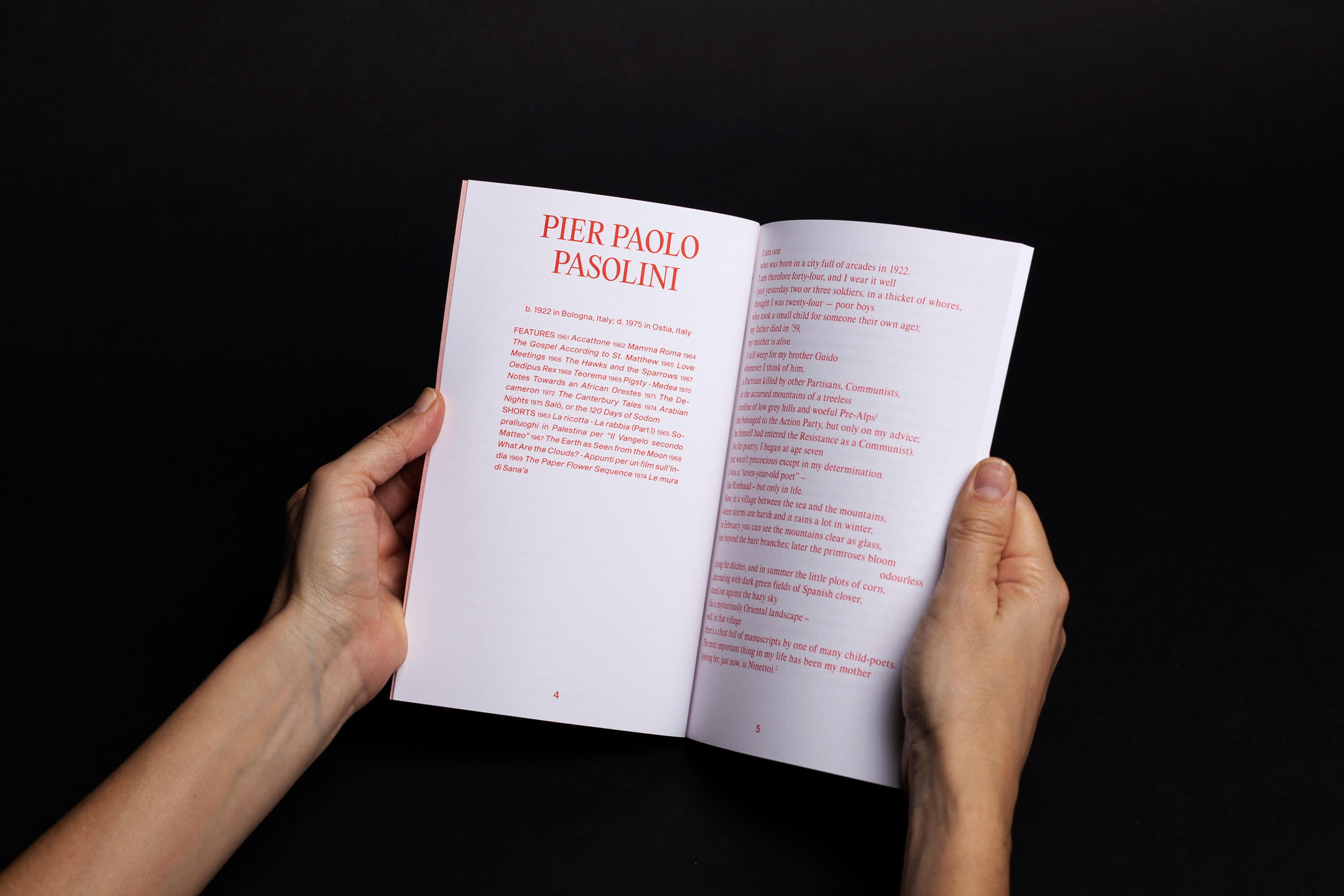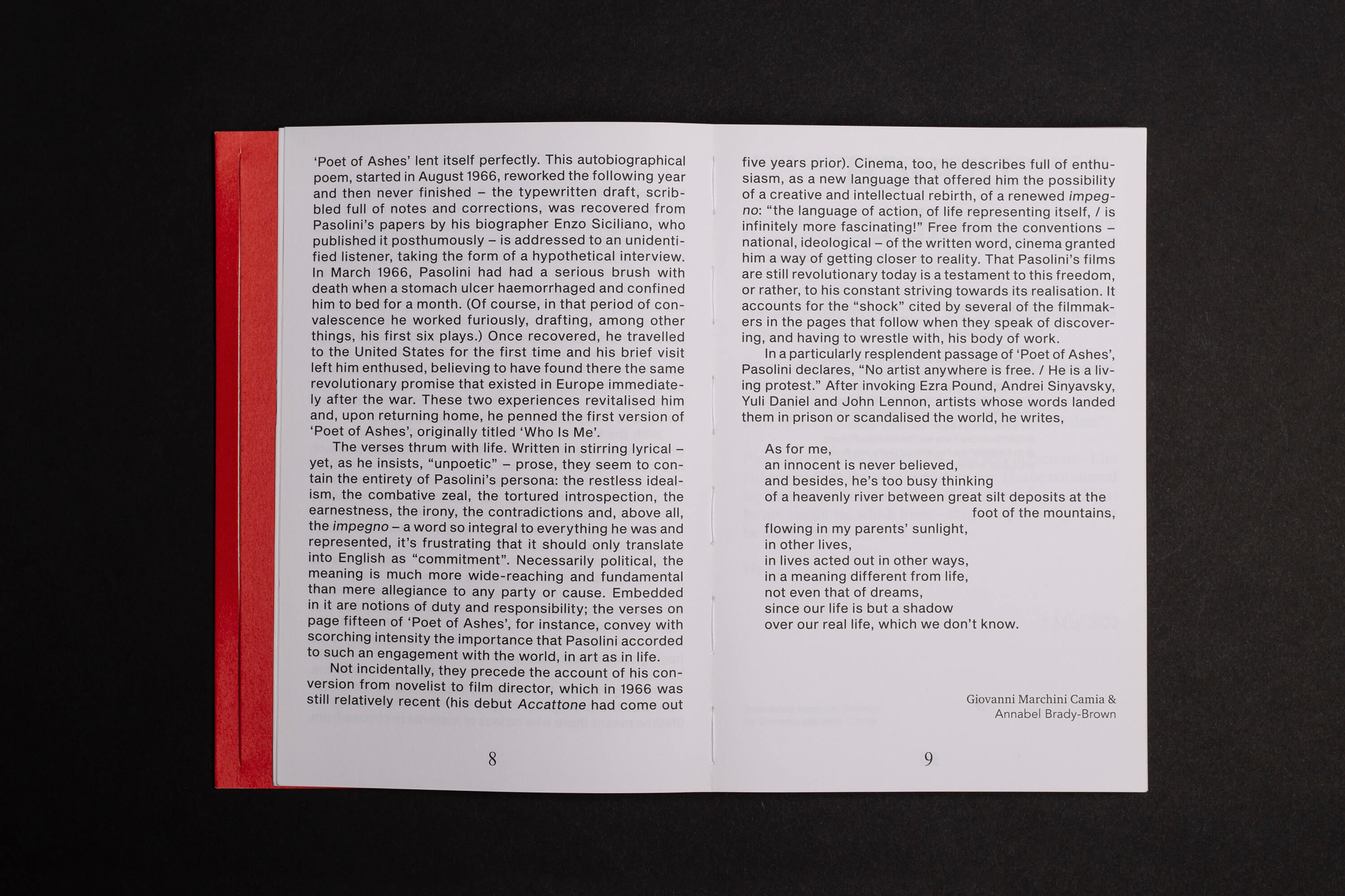 Book design for Pier Paolo Pasolini: Writing on Burning Paper.