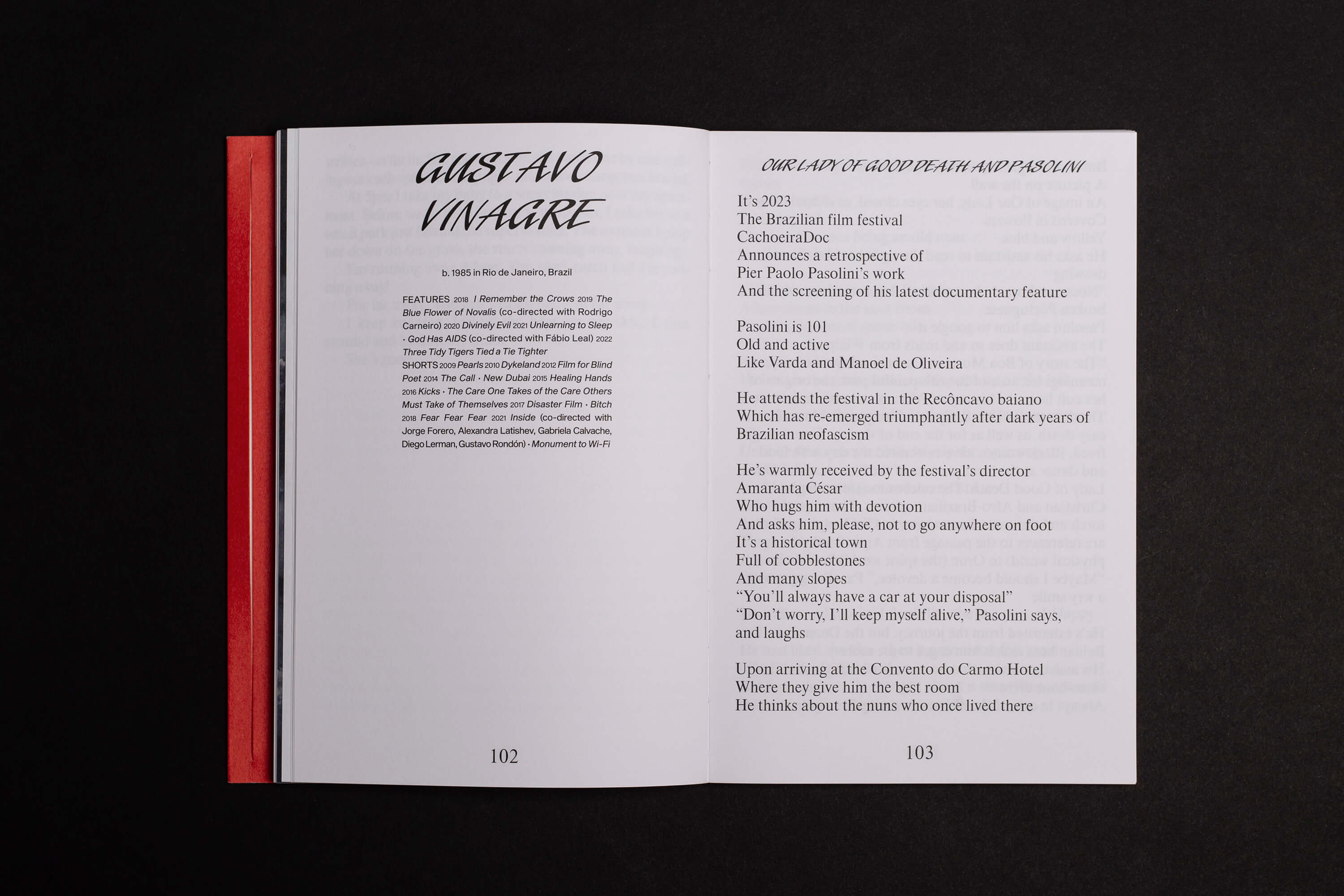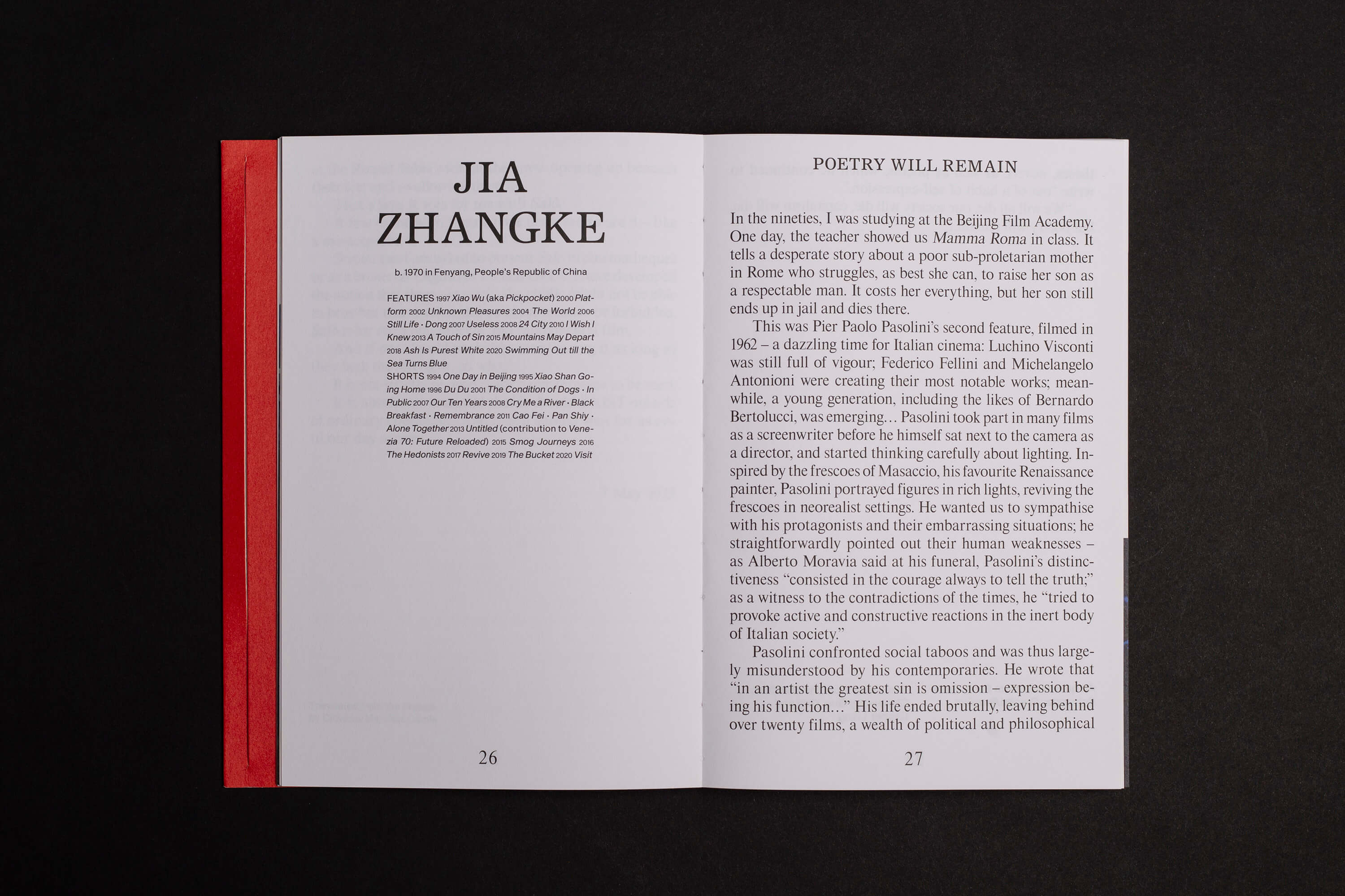 Celebrating the centenary year of Pasolini’s birth, the book is a dual edition that stages a dialogue between cinema today and Pasolini’s timeless films and words.